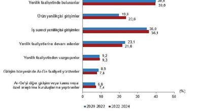 Yenilik faaliyetinde bulunan girişimlerin oranı %39,6 oldu Araştırma sonuçlarına göre çalışan sayısı 10 ve daha fazla olan girişimlerin %39,6'sı, 2022-2024…
