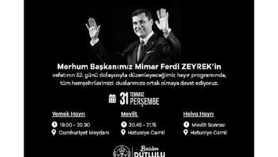 Manisa Büyükşehir Belediyesi, geçtiğimiz 9 Haziran’da hayatını kaybeden merhum Büyükşehir Belediye Başkanı Ferdi Zeyrek’i, vefatının 52.