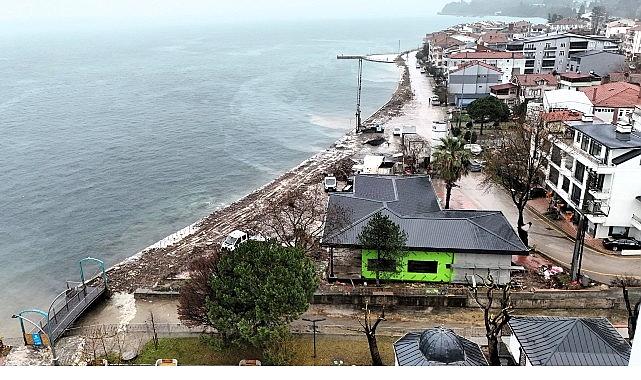 Kocaeli Büyükşehir Belediyesi, hayata geçirdiği projelerin yanı sıra vatandaşların can ve mal güvenliğini sağlayan yatırımlar da gerçekleştiriyor. Bu kapsamda Büyükşehir ekipleri, fırtınalı ve aşırı yağışlarda denizin kabarmasına karşı önlem olarak Gölcük Ulaşlı sahiline dalga kırıcı set inşa ediyor.