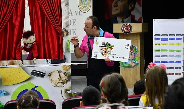 Anasınıfı öğrencilerinin atıklardan üretip yeniden kullanıma kazandırdıkları ürünlerden oluşan sergiyi gezen protokol üyeleri, daha sonra ‘Bilgeç ve Egemen Abi’ kukla gösterisini izledi.