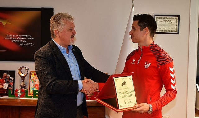 Verdiği kararla rahatsızlık geçiren bir taraftara erken müdahale yapılmasını sağlayarak tüm Türkiye’ye örnek olan hakem Ceyhun Elmas ve Türkiye Faal Futbol Hakemleri ve Gözlemcileri Derneği Kırklareli Şube Başkanı Oktay Erden, Lüleburgaz Belediye Başkanı Dr. Murat Gerenli’yi ziyaret etti.