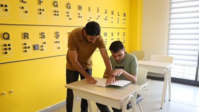 Kocaeli Büyükşehir Belediyesi’ne bağlı hizmet veren Gonca Engelsiz Yaşam Merkezi’nde görme engelli bireyler, kendileriyle aynı deneyimi paylaşan bir öğretmenden eğitim alıyor.